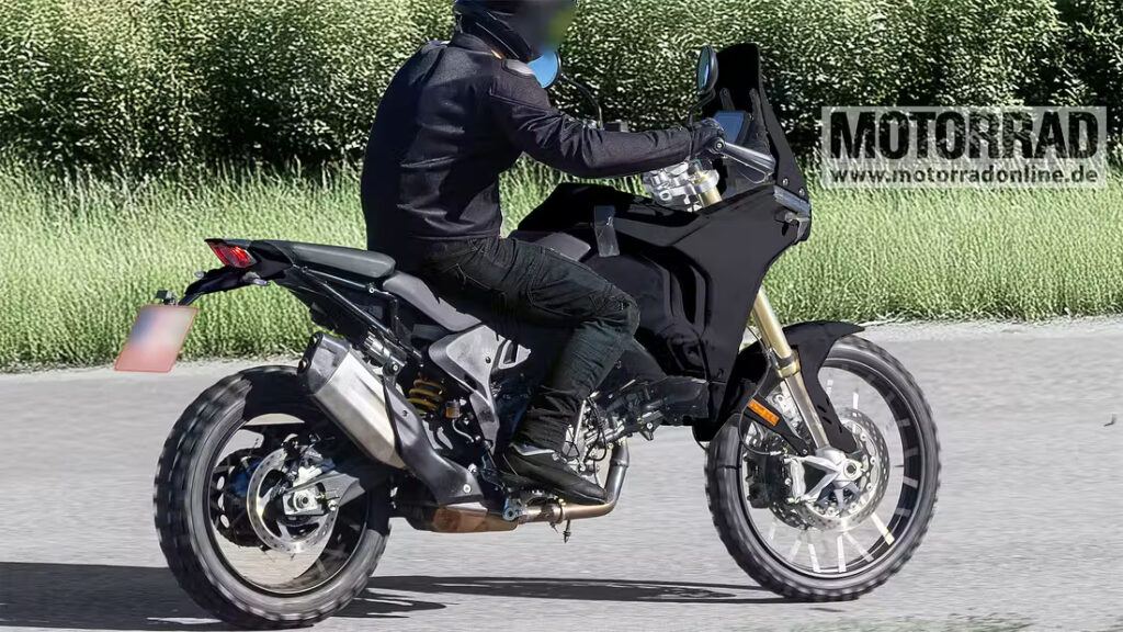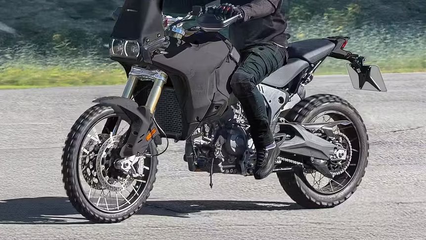 Esse protótipo descoberto pela revista alemã Motorrad revela as primeiras mudanças significativas na DesertX em quatro anos. O design, característico do estilo enduro, foi pouco alterado, mantendo sua principal característica visível, seus dois faróis redondos de LED, e o para-brisa ereto, bem “Dakariano”.
