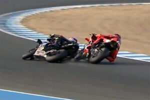Bezzecchi vinha bem solificado na frente quando pagou a primeira punição na quinta volta. O italiano voltou em terceiro, atrás de Fernandez e Acosta, mas, quando precisou fazer isso novamente, duas voltas depois, recuou para sexto, atrás de Alex Márquez (Gresini Ducati), Quartararo, e Fabio di Giannantonio (VR46 Ducati).