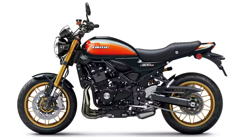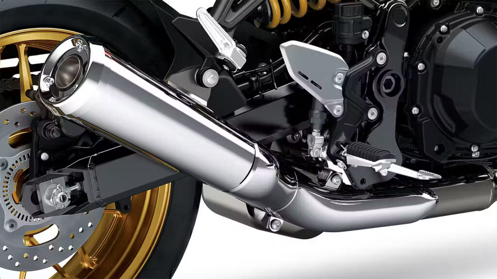 Mas o visual clássico e agradável da Z900 RS felizmente não foi mexido. As únicas mudanças menores e mais visíveis estão no sistema de exaustão, que também precisou ser reajustado para atender aos padrões de emissões. Os fãs notarão pequenas diferenças tanto nos coletores quanto no escapamento 4 em 1.