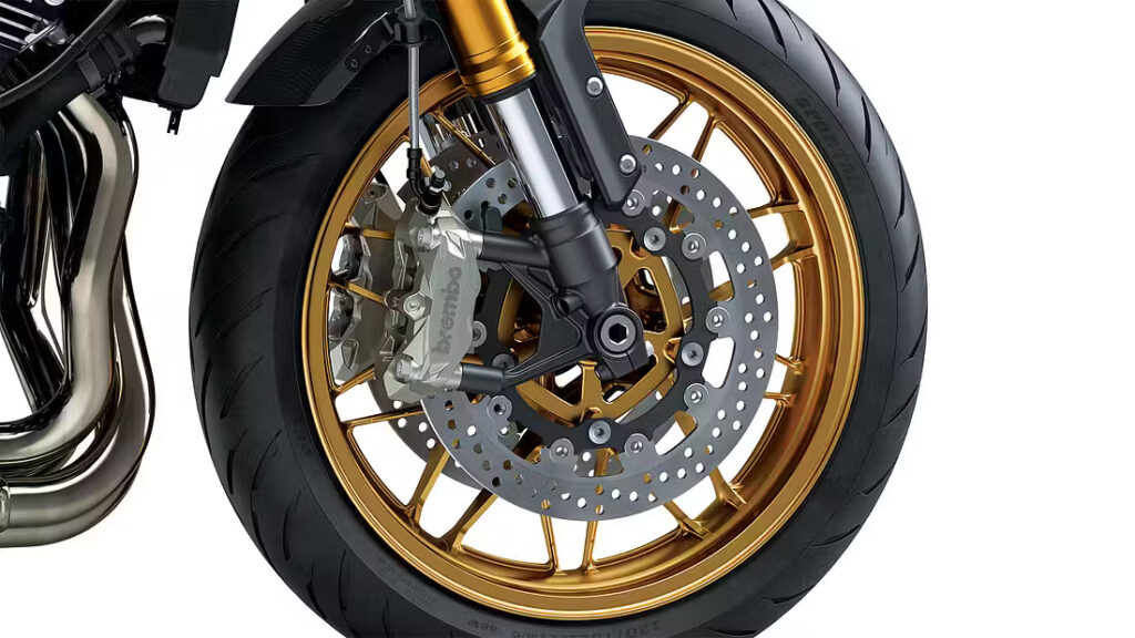 As mudanças foram feitas para enquadrar a motocicleta às leis de emissões do Euro5+, que passam a ser obrigatórias no território europeu a partir de 2026. Mas ao invés de perder potência, a Z900 RS passou de 111 cv a 8.500 rpm para 116 cv a 9.300 rotações.