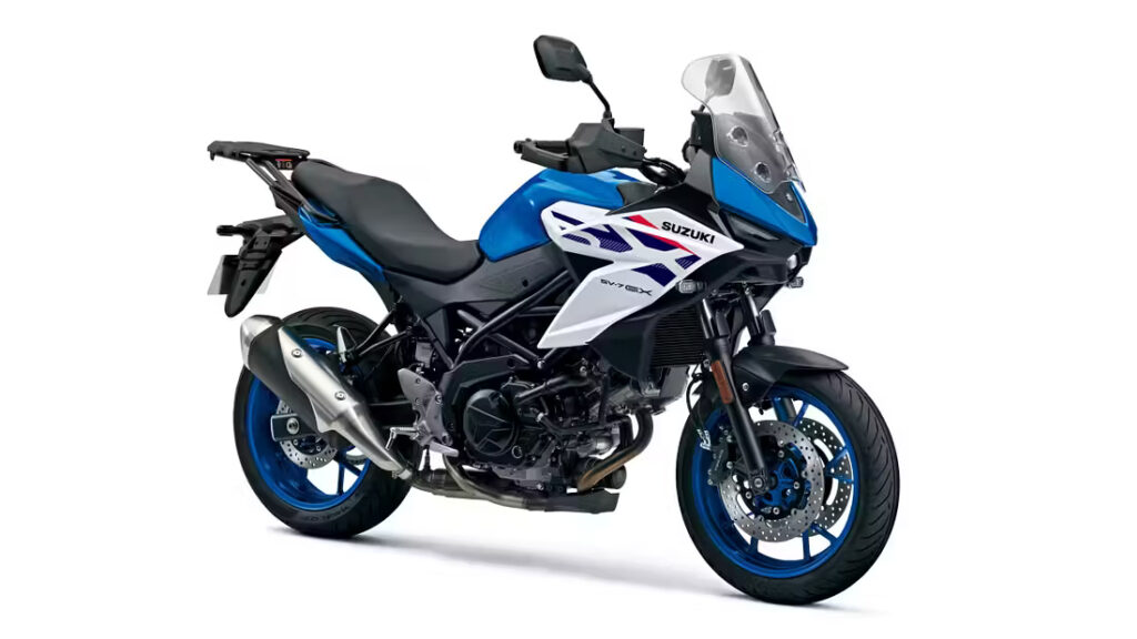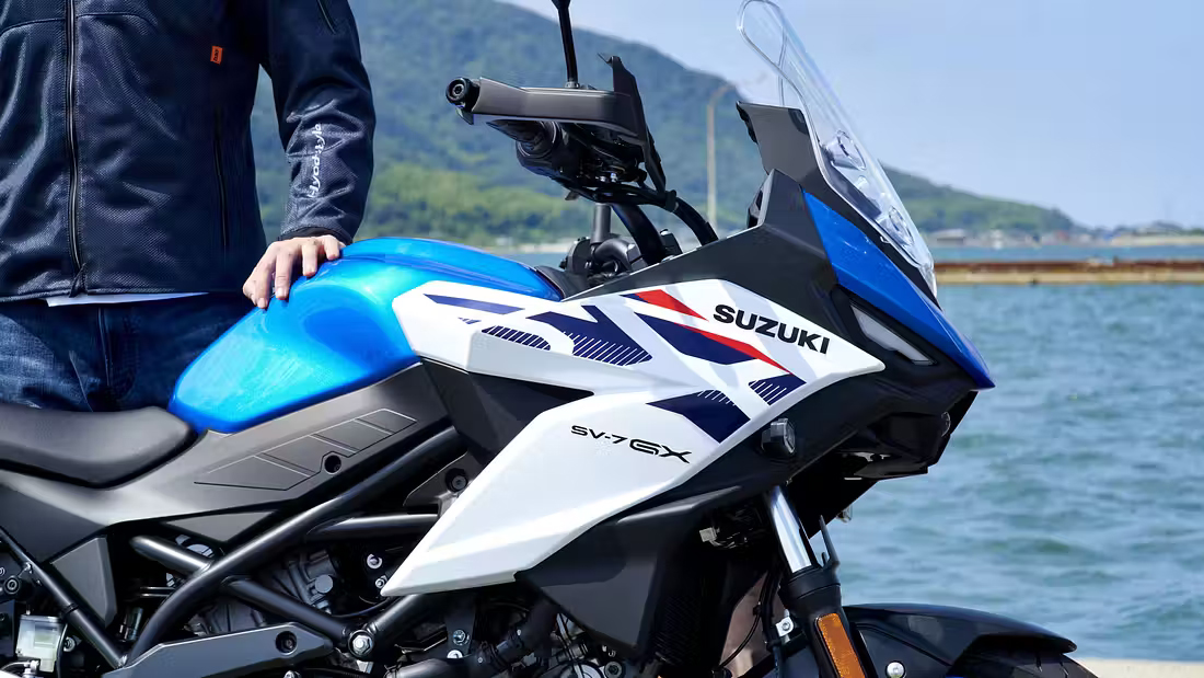 Os preços ainda não foram confirmados, mas a SV-7GX será oferecida em três cores, azul, cinza e preto, com suportes para bagagem e baú traseiro, além de protetores de mão, como itens de série. O pacote de acessórios genuínos inclui, entre outros, um para-brisa touring mais alto, um banco conforto (+25 mm), malas laterais (15–20 litros), uma bolsa de tanque (14 litros) e um baú traseiro de 45 litros.