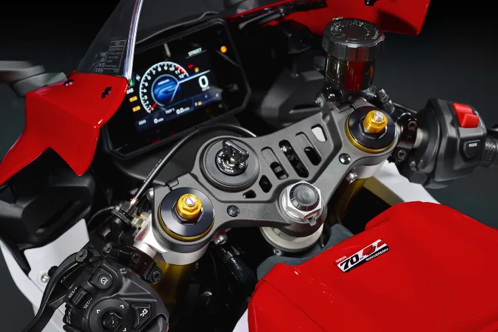 O controle de largada agora é de série, e a Yamaha também adicionou a opção de desativar o ABS traseiro. Cada sistema pode ser ajustado de acordo com as preferências do piloto a partir do celular, salvar até 40 configurações e carregá-las para a moto sem a necessidade de fios.