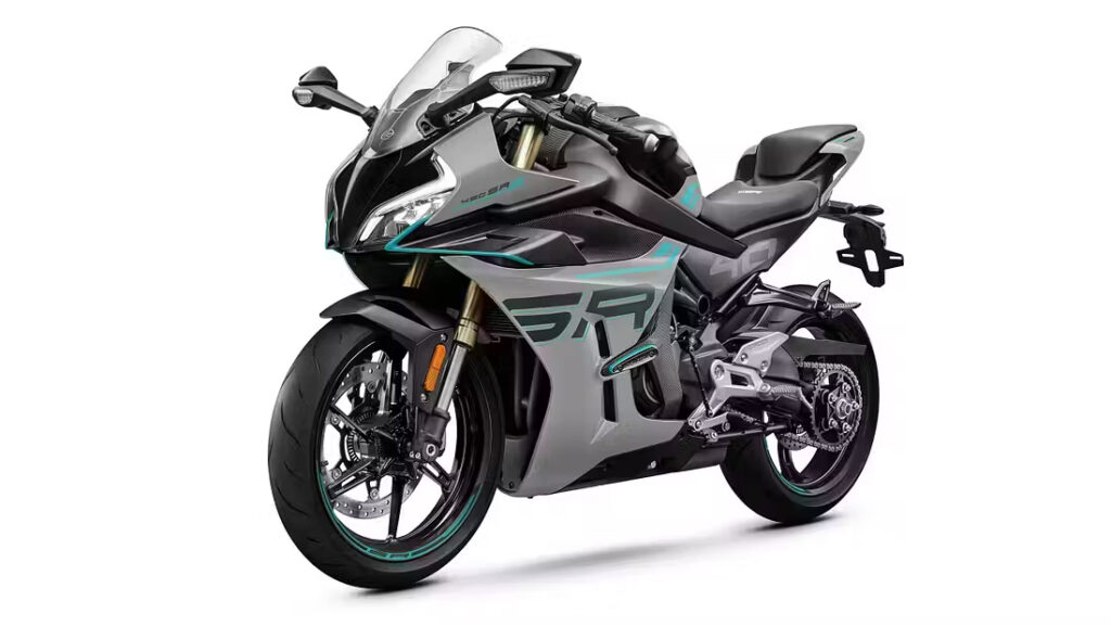 Mas a parte mecânica é totalmente derivada da CFMoto 450 SR-S, o que inclui o motor de dois cilindros em linha que rende aproximadamente 56 cv, o suficiente para levá-la a quase 200 km/h. O quadro e a balança de alumínio também são os mesmos, resultando em um peso total bastante baixo: 171 kg.