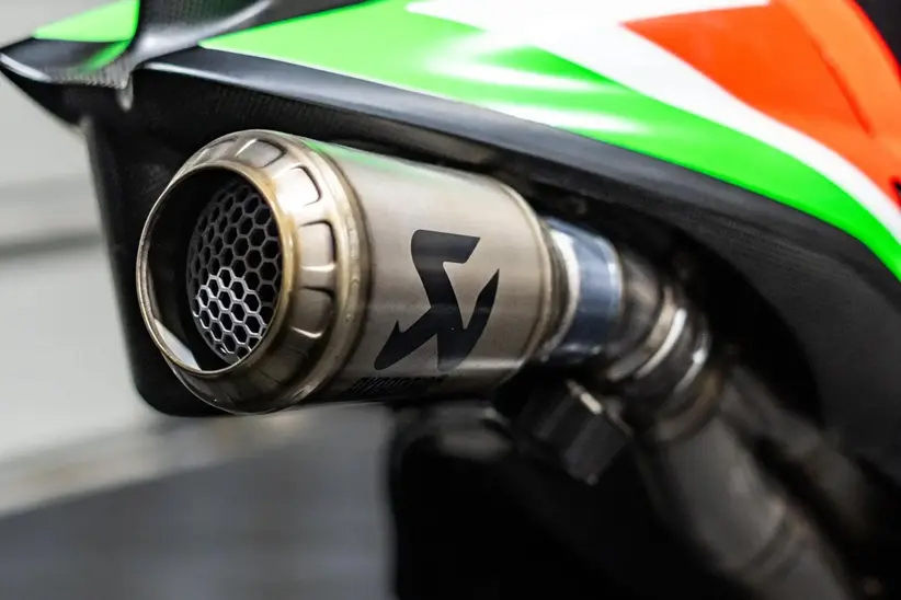 A moto encontra-se em estado totalmente original, como se tivesse acabado de sair da pista, e ostenta um sistema de escape Akrapovič, suspensão Öhlins de competição, discos dianteiros de carbono e carenagem completa em fibra de carbono. Acompanha a documentação original da Aprilia e as notas de entrega.