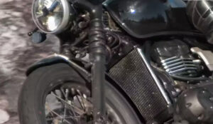 Já avistado em testes na Índia em julho do ano passado, o protótipo foi visto novamente, agora em uma versão bem mais acabada, com cromados, pintura, assento, espelhos e suporte de placa bem desenvolvidos. É óbvio que o design já está finalizado, com sutis revisões no estilo.