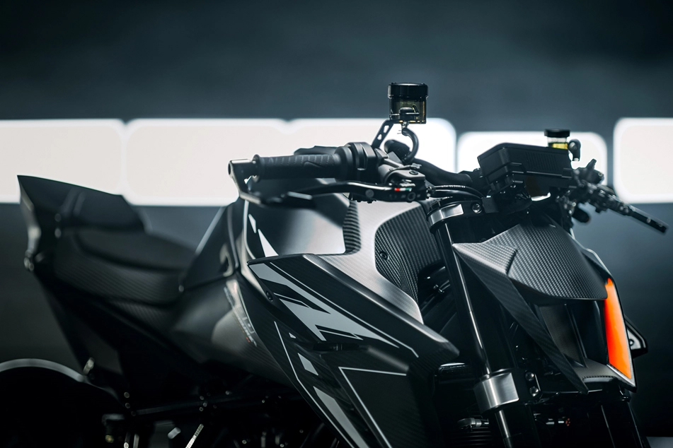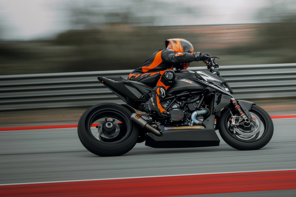 A KTM afirma que a RR Track foi projetada para motociclistas que desejam um pacote pronto para pista, direto da fábrica, em vez de modificar uma moto de rua por conta própria. Mas, quando se trata de motos de pista, muitos preferem ter uma carenagem para melhorar a penetração aerodinâmica – especialmente com quase 200 cv à disposição.